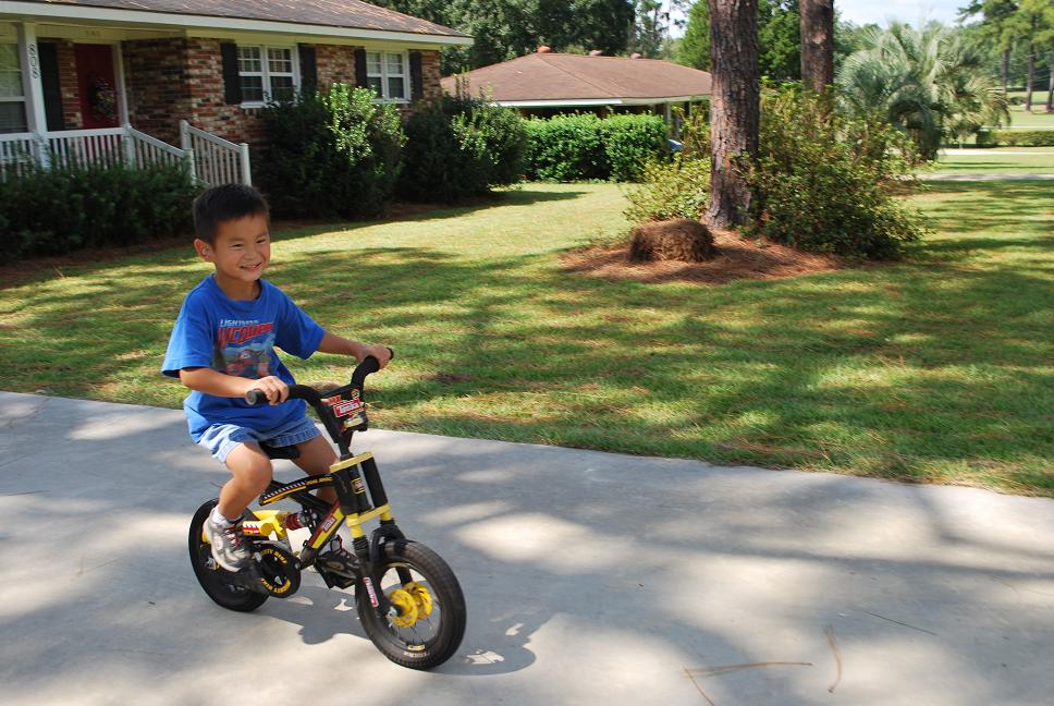 On Tuesday as we walked past his bike in the carport, I said "Daniel, I know that you could totally ride that bike without your training wheels now if you tried."